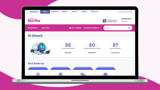 After you log into Raz-Plus®, Reading A-Z®, and Raz-Kids®, you’ll find everything you need for research-based literacy instruction with quick access* to: